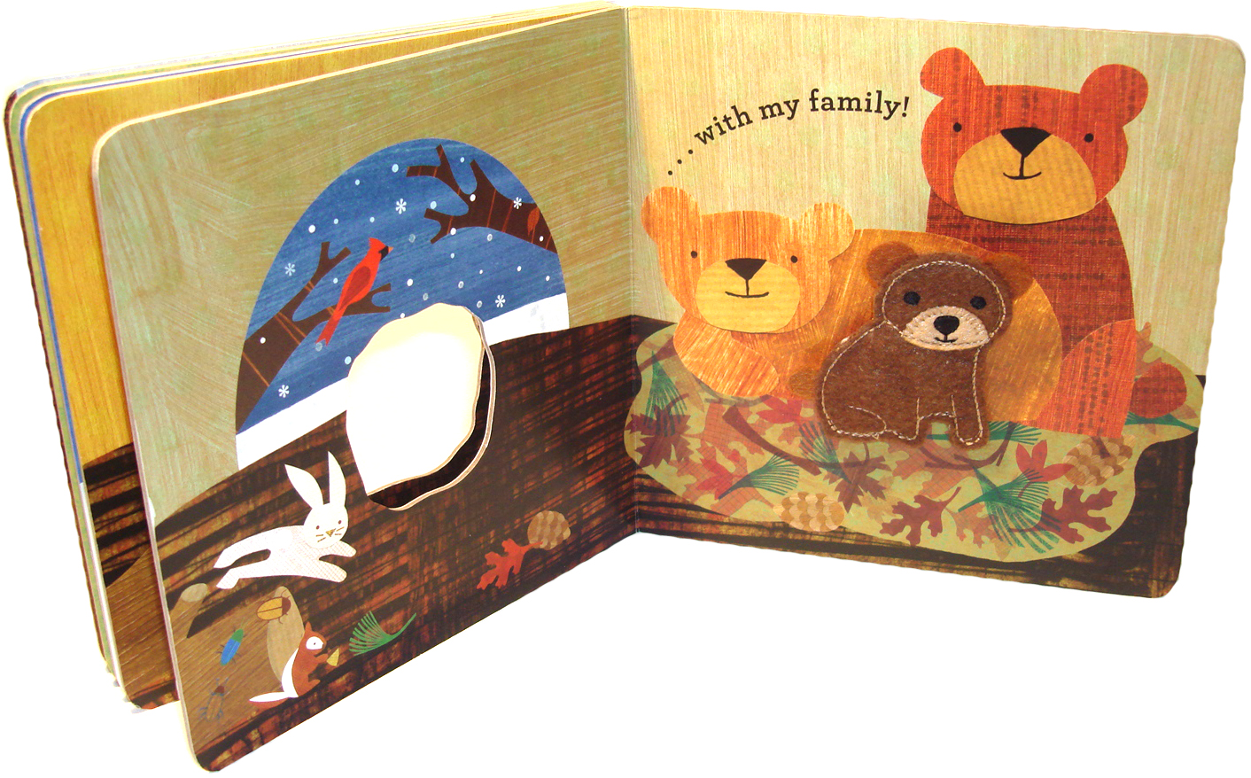 I happened upon “In My Pond” on one of our many pre-JJ shopping sprees. I was immediately smitten by the wonderful illustration style. I was further smitten by the adorable die cut holes getting smaller with each page, revealing different scenes and all the while featuring a delightful felt fish that leads you through the story.