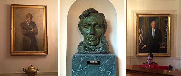 I managed to silence the doubts long enough to enjoy the experience — to soak in the history and grandeur. Strolling through the East Wing, I noticed all my favorites were there: Abe, Jack, Bill. While I was determined to not spend the entire time in social media mode, I did get in a couple of selfies; an official-looking one in front of the Presidential Seal over an important-looking door; and a White House bathroom selfie, natch.