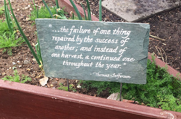 A parting (and very fitting) quote from Thomas Jefferson, seen at the entrance on our tour of the White House Kitchen Garden: