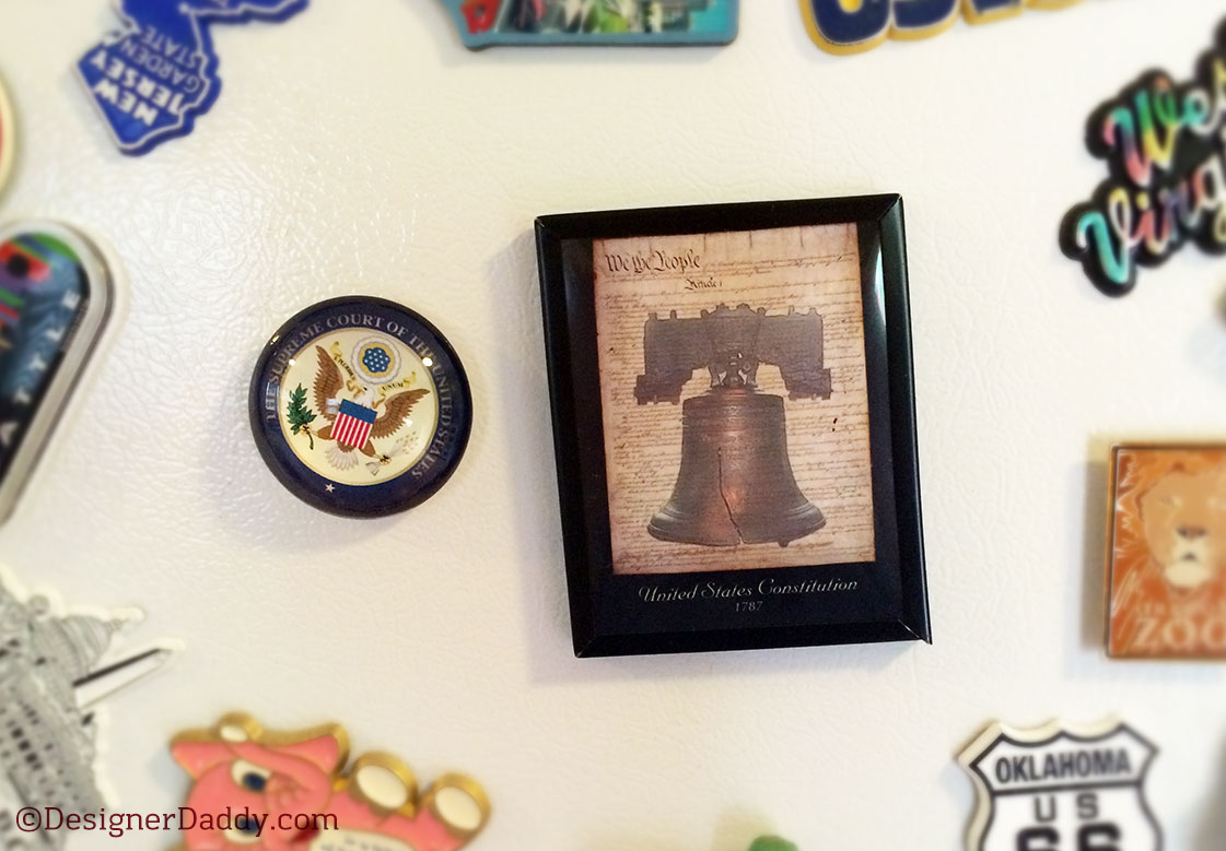 EPILOGUE: As I mentioned earlier, I’d decided not to post a magnet for the entire country today (in lieu of the individual remaining states). But then during our trip to the Supreme Court building today, Jon and I went into the gift shop. When I saw the display of magnets featuring the seal of the Supreme Court of the United States and miniature versions of the Constitution, I wept. And then I bought them and put them on my fridge.