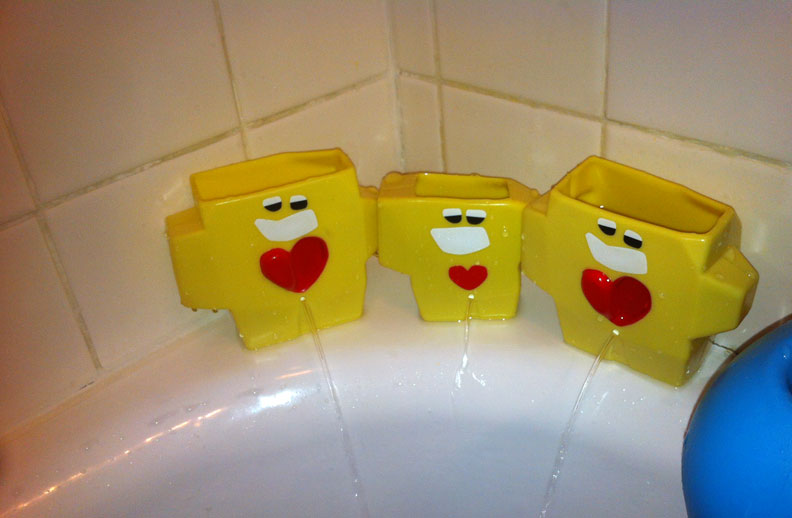 UBBAS Bath Cups were created by designer Rob Spalding as a tool that offers a fun, loving representation of family for kids of same-sex parents. Each is sold separately, so I got 2 Papas and 1 Brother, natch. It’s also meant to open dialog with your kids about their bodies. You know, because of the peeing.