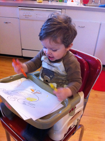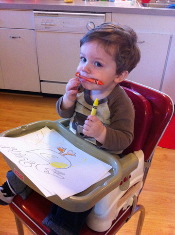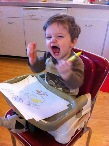 So in anticipation of this year’s Dad’s Day, I think back on the last year: what’s been the greatest joy, the hardest hardship, and especially – what have I passed onto my son that I can be proud of. I’m not gonna be the Dad that teaches his son how to rebuild the engine of a Camaro (although I can teach him how to drive stick). And while I can show him how to hit or catch or throw a ball, he will probably surpass my skill level before he’s out of diapers. But what I can teach him is to appreciate art. And that starts with his first set of chunky Crayolas.