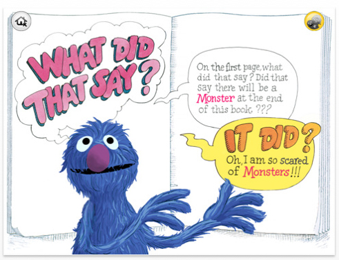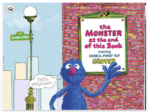 A couple of weeks ago the “Free App of the Week” at Starbucks was the interactive story The Monster at the End of This Book, starring Lovable, Furry Old Grover. (You remember him, the much-less-annoying predecessor to Elmo) Since it was free, I figured — like many of the “Free Song of the Week” offerings — it was gonna suck. I remember loving the book when I was a kid (originally published in 1971), but my hopes were not that high for this newfangled e-version.
