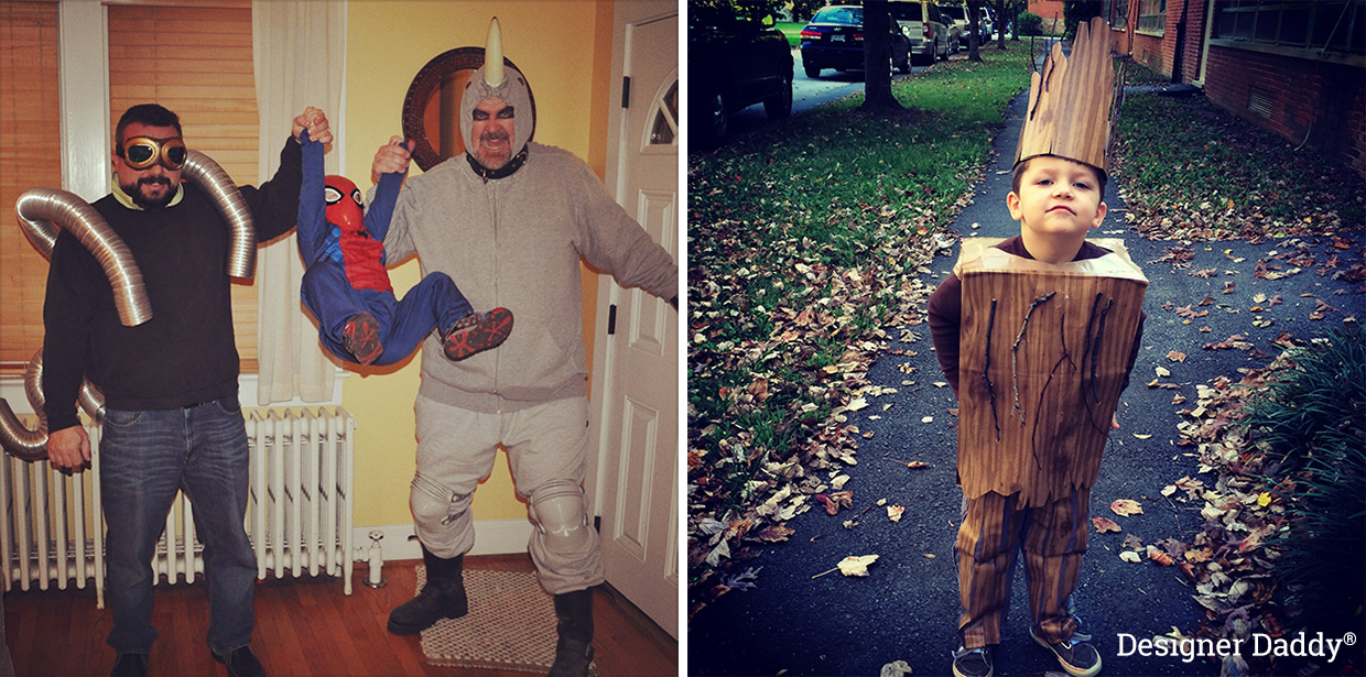 The next logical step was play-acting, which was especially fun at Halloween. After a couple years of adorable anthropomorphic costumes, we ventured into superheroes. Two standouts were the year we went as a family of Spider-Man characters, followed the next by Jon rocking a homemade Groot costume.