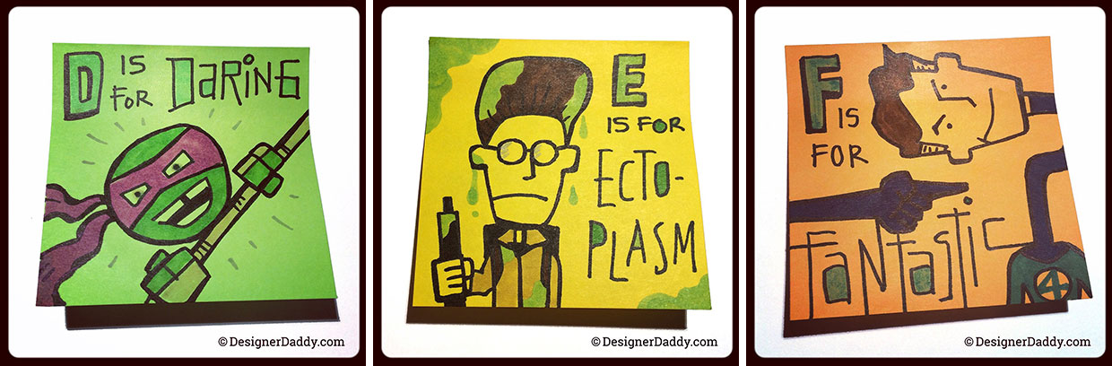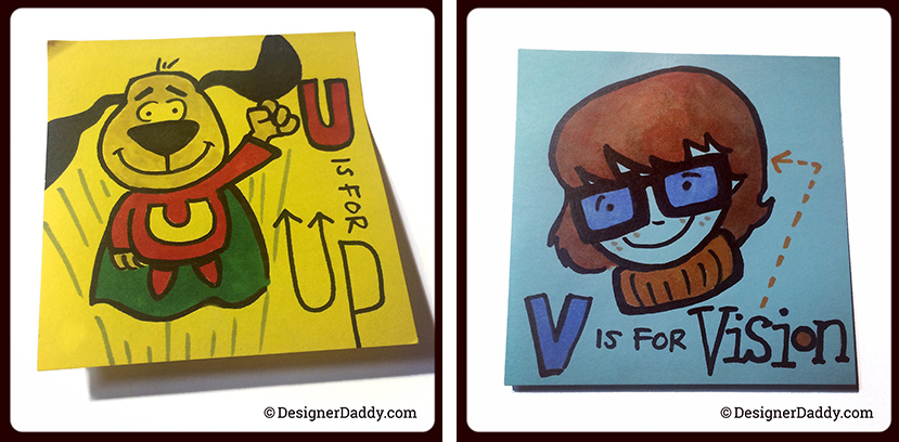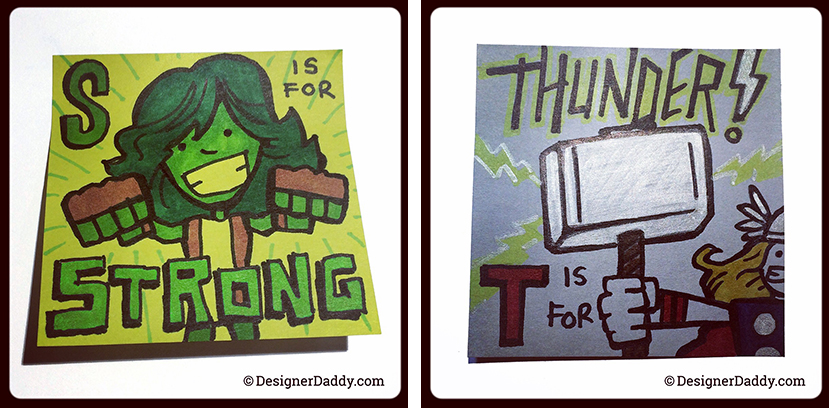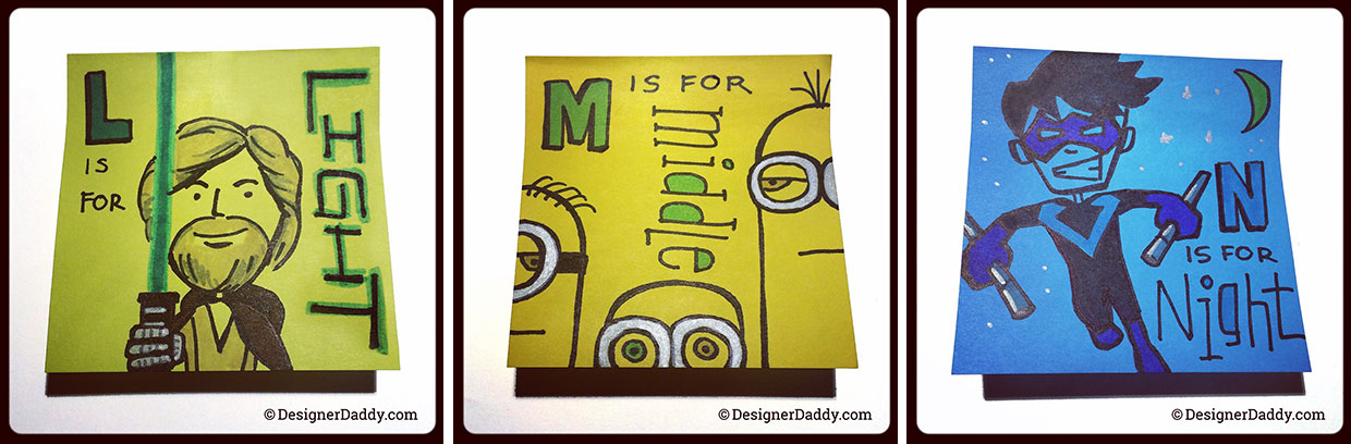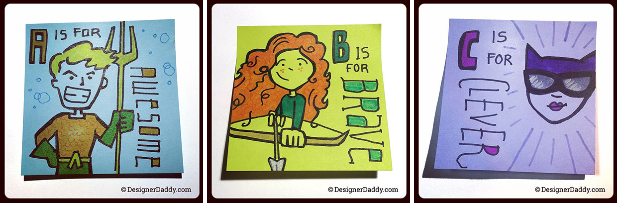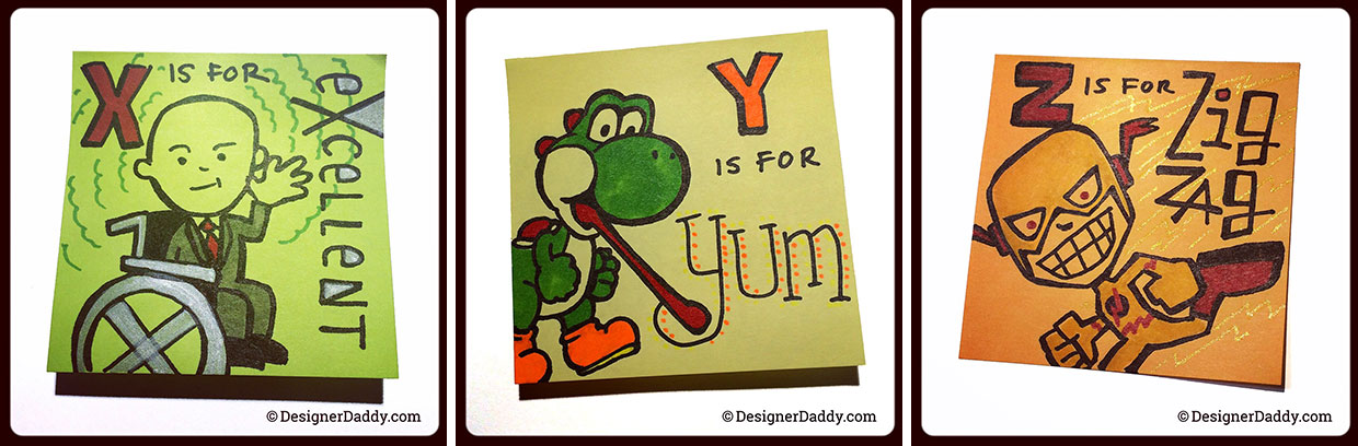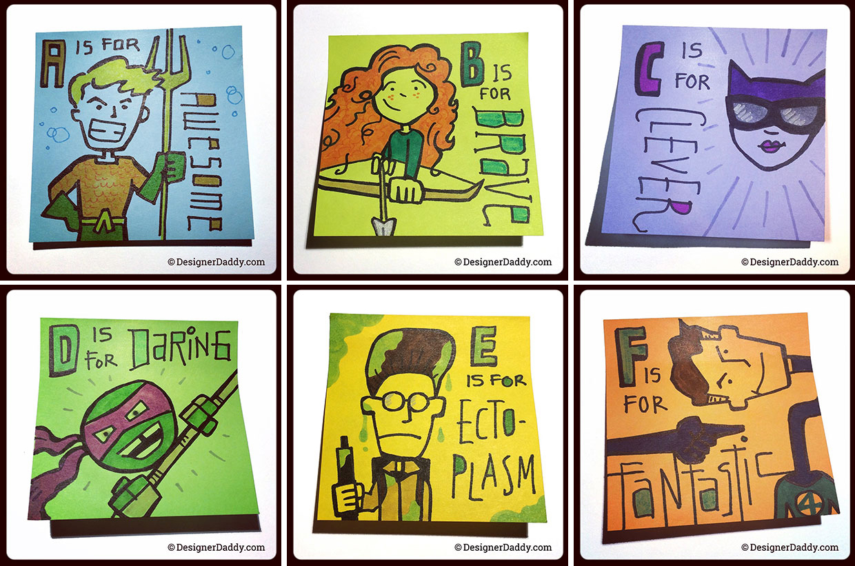 As the old year rebooted to a new one, I kicked it off with SuperLunchNotes A-to-Z in my son’s lunch box. I was bored at the idea of just doing a character that starts with each letter, so I decided to include a word describing or associated with the subject. A word he could figure out on his own — either in context or using his ever-increasing reading skills. If he wasn’t always going to eat well, at least he could learn something.