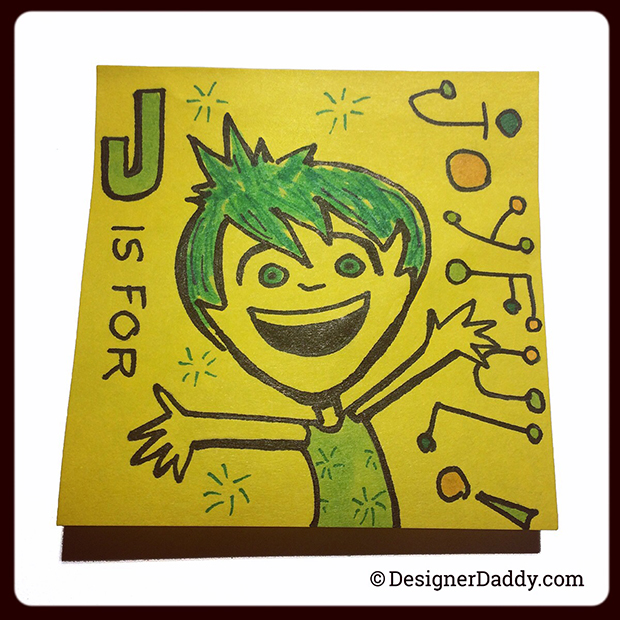 A couple of serendipitous days fell during my run through the alphabet. The first was getting to add some Joy to my son’s lunch the day after Inside Out’s Best Animated Film Oscar nomination was announced (which it went on to win). The film had also won a Golden Globe just a few days prior.
