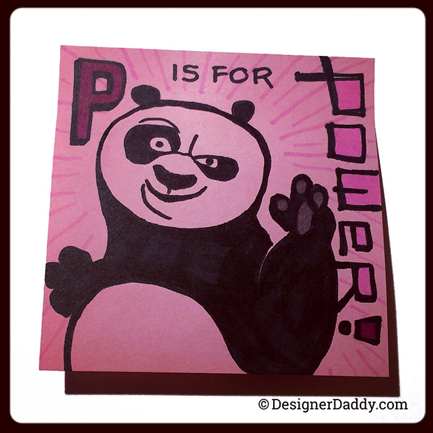 The last super-well-timed lunch note was the “P” note featuring the powerfully funny panda, Po. It popped up in Jon’s lunch the Monday after we saw Kung Fu Panda 3, and the same day my review of the film was published. It focused on the adoption aspect of the movie, specifically regarding Po meeting his birthfather and interactions with Po’s adoptive dad. You can read it here.