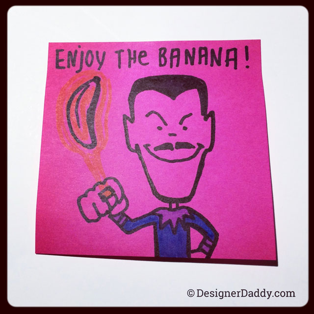 Oh Sinestro… so sinister, so sinveling, so um… pink. (Went with his blue Legion of Doom getup rather than his modern yellow costume. But I guess the eeeevil mustache and fuchsia skin tone gives him away, regardless.) Banana added for scale, by the way.