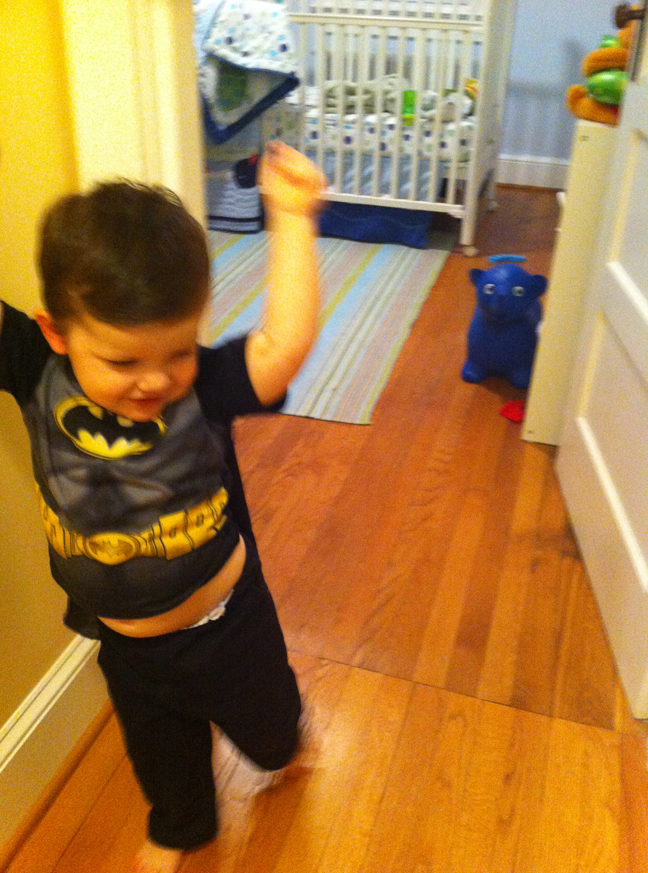 Yet I’m brought back to only a few minutes later this morning when I went downstairs to get JJ out of bed. Seeing him in his Batman pajamas, eager to stick on his velcro cape and greet the day, I wondered how I could ever protect him from something like that – a real life super villain. And for the first time as an adult, it made me wish Batman was real, too.